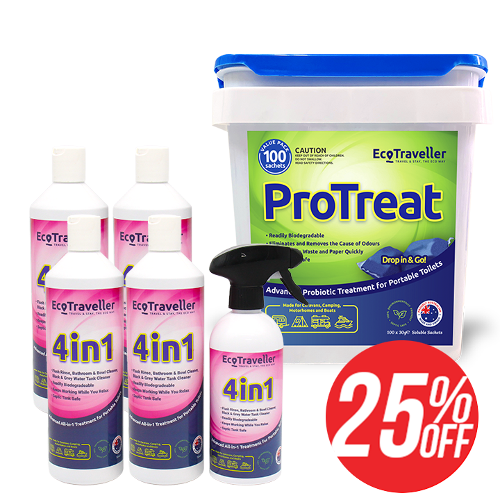 Eco Traveller has formulated the ideal combination of probiotics and environmentally friendly ingredients, that help breakdown waste and remove odours from your caravan, RV and motorhome toilets.